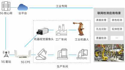 采用“5G無線+5G邊緣計算+云平臺”組?模式,通過5G CPE/工業(yè)網(wǎng)關(guān)提供的5G網(wǎng)絡(luò)將生產(chǎn)現(xiàn)場的傳感器、處理器、PLC等連接起來,使工廠現(xiàn)場控制設(shè)備、機器人之間可以進行通信,實現(xiàn)多功能和復(fù)雜工作;且5G CPE/工業(yè)網(wǎng)關(guān)支持接入云管理平臺,橫向多工廠協(xié)同,縱向供應(yīng)鏈互聯(lián)。針對工廠專網(wǎng)環(huán)境,保證數(shù)據(jù)不出廠,將云平臺部署到客戶服務(wù)器上,實現(xiàn)工廠終端設(shè)備集中式管理及監(jiān)控維護。