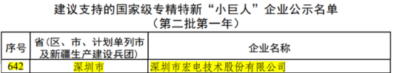近日,國家工業(yè)和信息化部公示了《建議支持的第二批第一年國家級(jí)專精特新“小巨人”企業(yè)名單》,宏電股份以優(yōu)異的綜合實(shí)力入選。本次全國獲批企業(yè)共656家,其中深圳市企業(yè)36家。