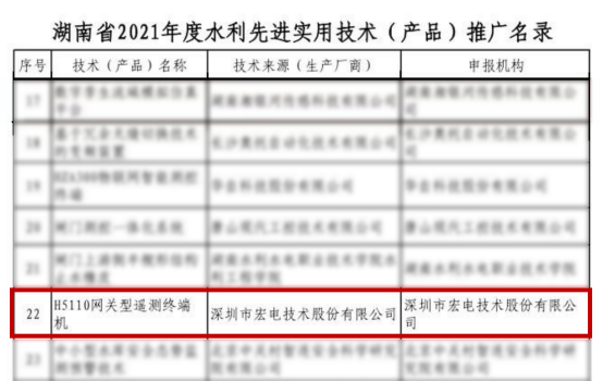 宏電H5110網(wǎng)關(guān)型遙測終端機入選湖南省2021年度水利先進(jìn)實用技術(shù)推廣名錄