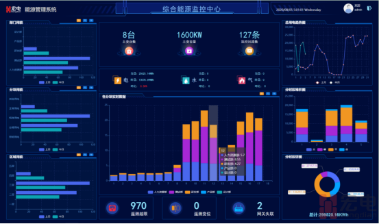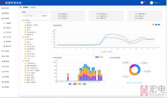 針對上述情況,宏電通過對重點能耗企業(yè)進行深入的需求調(diào)研,結(jié)合多年深耕IOT行業(yè)的項目積累,融合物聯(lián)網(wǎng)技術(shù)、大數(shù)據(jù)、云計算等技術(shù)對企業(yè)所有能耗按不同層次、不同維度進行統(tǒng)計分析,通過可視化圖表向管理人員或決策層直觀展示各用能單位的能耗情況,通過精細化的管理分析能耗高點、能耗極值以及不合理的用能習(xí)慣,為企業(yè)進一步節(jié)能降耗提供科學(xué)準確的數(shù)據(jù)依據(jù)。