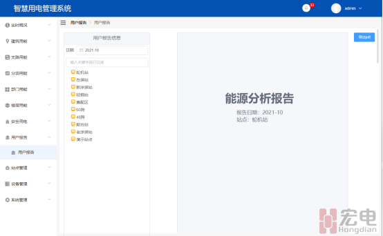 系統(tǒng)可根據(jù)用戶需求,展示出各建筑、支路、樓層、部門等多個不同維度的能耗數(shù)據(jù)包含用能概況、用能統(tǒng)計、用能分析、損耗分析以及費用報表等,幫助企業(yè)了解每個環(huán)節(jié)能耗情況和能源損耗分析。