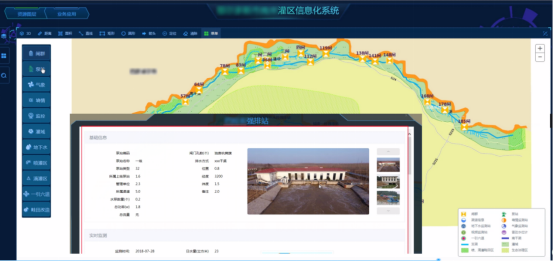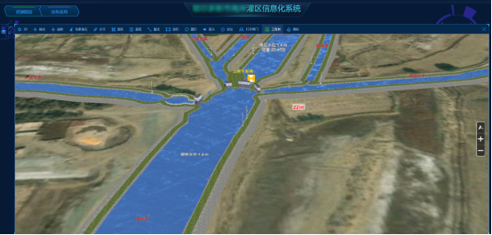 基于二三維一體化GIS技術(shù),實(shí)現(xiàn)灌區(qū)信息的綜合監(jiān)測(cè)分析(包括閘群監(jiān)控、渠道水量、土壤墑情、地下水、氣象、泵站等),能夠在三維GIS系統(tǒng)里加載符合現(xiàn)狀環(huán)境的閘群、渠道、泵房等設(shè)備設(shè)施的真三維模型、查看監(jiān)視信息以及各類(lèi)信息統(tǒng)計(jì)、分析、服務(wù)等功能。