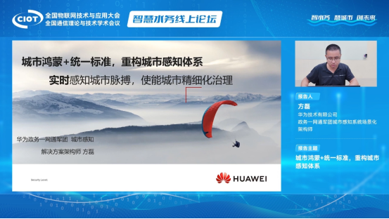 華為技術有限公司政務一網(wǎng)通軍團城市感知系統(tǒng)場景化架構師方磊先生發(fā)表了《城市鴻蒙+統(tǒng)一標準,重構城市感知體系》主題演講,介紹了城市感知的發(fā)展趨勢、挑戰(zhàn)和機遇,以及華為的城市鴻蒙物聯(lián)感知解決方案在智慧水務領域中的應用,打造具備“可視、可知、可控、可預測”能力的智慧水務。