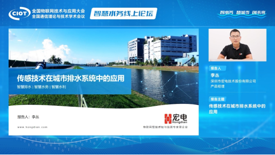 深圳市宏電技術股份有限公司產(chǎn)品經(jīng)理李叢先生分享了《傳感技術在城市排水系統(tǒng)中的應用》,介紹了宏電自主研發(fā)的覆蓋空中、地表和地下管網(wǎng)的立體監(jiān)測體系的構建,以及傳感技術在水位監(jiān)測、流量監(jiān)測等具體監(jiān)測場景中的應用。