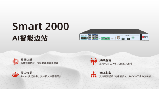 作為深圳宏電自主研發(fā)的一款功能強(qiáng)大、性能突出的邊緣計(jì)算智能終端產(chǎn)品,Smart2000 AI智能邊站具有強(qiáng)大的設(shè)備接入能力、邊緣計(jì)算能力、安全防護(hù)能力等。該產(chǎn)品可對實(shí)時(shí)視頻進(jìn)行智能化分析,支持接入多路普通攝像機(jī),通過AI智能邊站強(qiáng)大的“智慧大腦”處理后,即可展示出智能化的結(jié)果。例如人臉識別、車牌識別、安全帽識別、工服識別、抽煙識別、行為分析、周界防范等。 同時(shí)其支持云邊協(xié)同機(jī)制,支持docker容器功能,滿足項(xiàng)目上一鍵部署的需求,并且可以遠(yuǎn)程更新算法模型。目前已廣泛用于電網(wǎng)配電房、燃?xì)忾T站、工地、車間、泛安防等需要進(jìn)行視頻內(nèi)容識別的場景,滿足對AI智能化的應(yīng)用需求。