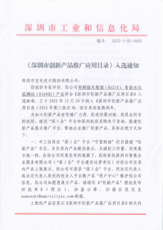 實(shí)力見證,載譽(yù)前行!宏電智能采集器、智能水位監(jiān)測站入選《深圳市創(chuàng)新產(chǎn)品推廣應(yīng)用目錄》