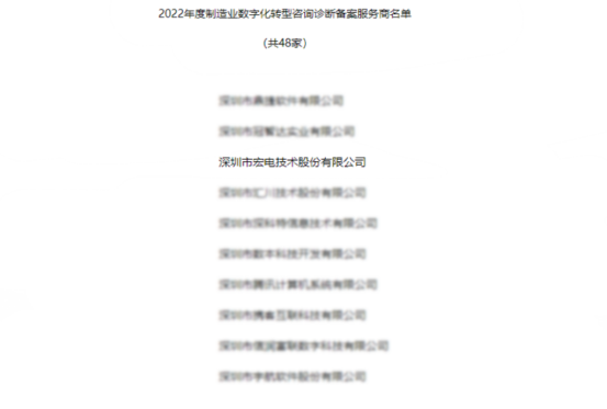 宏電股份入選深圳2022年度制造業(yè)數(shù)字化轉(zhuǎn)型咨詢?cè)\斷備案服務(wù)商