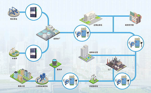系統(tǒng)涵蓋城市供水中的水源地取水、水廠制水、管網(wǎng)輸水、加壓送水、用戶用水等各個環(huán)節(jié),實現(xiàn)全流程遠程監(jiān)管和智能聯(lián)動控制,優(yōu)化生產(chǎn)調度,保障高效供水,促進節(jié)能降耗,降低產(chǎn)銷差,是水司實現(xiàn)智慧化運營的重要途徑。