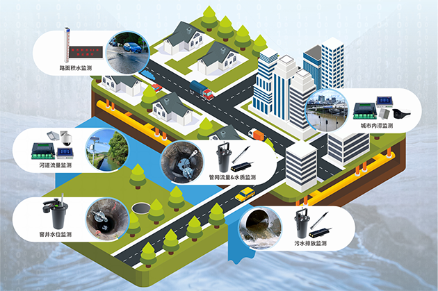 系統(tǒng)涵蓋“源-網(wǎng)-站-廠-河”全流程感知監(jiān)測,主要由水位/流量/水質傳感器、數(shù)據(jù)處理主機、數(shù)據(jù)傳輸系統(tǒng)、供電系統(tǒng)、設備管理平臺、應用層等部分組成。傳感部分是信息化的基礎,主要實現(xiàn)城區(qū)管網(wǎng)數(shù)據(jù)信息采集和排水過程監(jiān)測監(jiān)控。測量主機主要實現(xiàn)站點編輯、斷面輸入、各類數(shù)據(jù)匯集、存儲、管理和計算。遠程傳輸系統(tǒng)主要是通過RTU的數(shù)據(jù)傳輸功能,將數(shù)據(jù)進行上傳至數(shù)據(jù)中心。應用層在信息資源中心的基礎上提供綜合信息服務、工程運行維護管理和信息展示等功能,為城市排水防澇和工程調度提供科學依據(jù)。