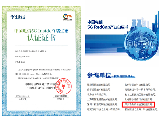 今年2月,為推動產(chǎn)業(yè)合作,匯聚行業(yè)生態(tài),形成更加豐富的5G行業(yè)終端體系為目標(biāo),中國電信發(fā)布5G Inside合作計(jì)劃,并攜手宏電股份等產(chǎn)業(yè)鏈合作伙伴共同發(fā)布《中國電信5G RedCap產(chǎn)業(yè)白皮書》、《中國電信5G雙域快網(wǎng)業(yè)務(wù)白皮書》。作為聯(lián)盟重要成員,宏電股份長期專注在物聯(lián)網(wǎng)無線通信及行業(yè)應(yīng)用市場,深度結(jié)合行業(yè)客戶的需求,賦能客戶數(shù)字化轉(zhuǎn)型,在工業(yè)、電力、交通、能源等多個(gè)行業(yè)開展5G創(chuàng)新的積極探索和商用落地。宏電5G工業(yè)智能網(wǎng)關(guān)、5G 工業(yè)CPE兩款產(chǎn)品也通過嚴(yán)格的終端性能測試,榮獲中國電信頒發(fā)的5G Inside終端生態(tài)認(rèn)證證書,宏電5G工業(yè)通信終端的可靠性、穩(wěn)定性、實(shí)用性得到業(yè)內(nèi)權(quán)威認(rèn)證。