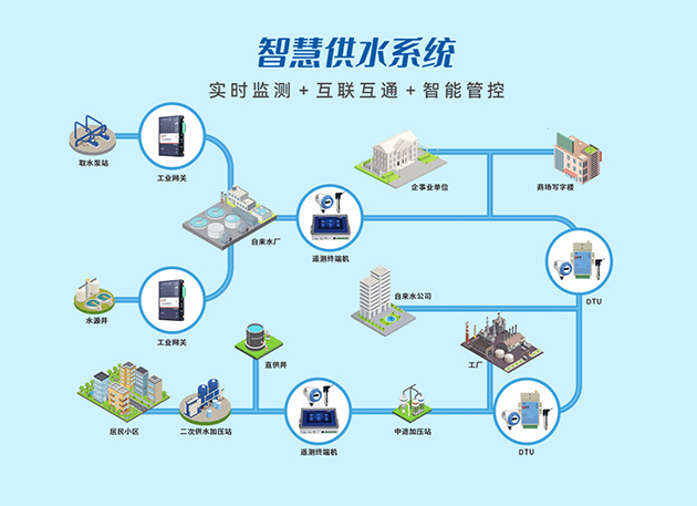 系統(tǒng)涵蓋城市供水中的水源地取水、水廠制水、管網(wǎng)輸水、加壓送水、用戶用水等各個(gè)環(huán)節(jié),實(shí)現(xiàn)全流程遠(yuǎn)程監(jiān)管和智能聯(lián)動(dòng)控制,優(yōu)化生產(chǎn)調(diào)度,保障高效供水,促進(jìn)節(jié)能降耗,降低產(chǎn)銷差,是水司實(shí)現(xiàn)智慧化運(yùn)營(yíng)的重要途徑。