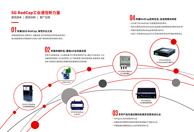 針對(duì)電力、工業(yè)等對(duì)5G RedCap需求迫切的場(chǎng)景,宏電股份聚力打造多款工業(yè)網(wǎng)關(guān)、工業(yè)DTU、電力DTU、工業(yè)路由器等行業(yè)終端。例如宏電H7710-DLWZ-NR 5G RedCap電力DTU是一款低功耗、小尺寸的專用型電力終端,支持IEC 101/104等電力專用協(xié)議,支持5G多DNN切片、5G LAN、高精度B碼授時(shí)等5G原生能力,并通過(guò)華為OpenLab實(shí)驗(yàn)室技術(shù)認(rèn)證。