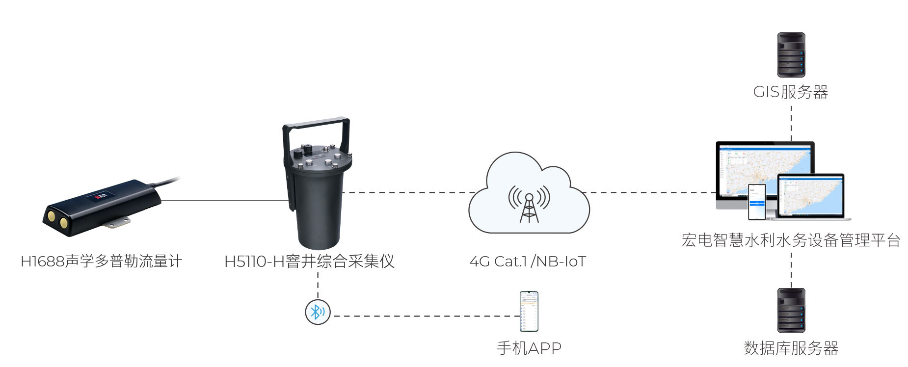 智能流量監(jiān)測站由宏電“窨井流量監(jiān)測衛(wèi)士”H1688聲學(xué)多普勒流量計和“窨井?dāng)?shù)據(jù)采集衛(wèi)士”H5110-H窨井綜合采集儀組成。H1688聲學(xué)多普勒流量計測量管道中流體的水位、流速和流量,H5110-H窨井綜合采集儀將數(shù)據(jù)通過4G Cat.1/NB-IoT無線網(wǎng)絡(luò)傳輸至監(jiān)測平臺,當(dāng)監(jiān)測到流量突然變大時,平臺將發(fā)出預(yù)警信息,及時提醒管理人員采取相應(yīng)措施。