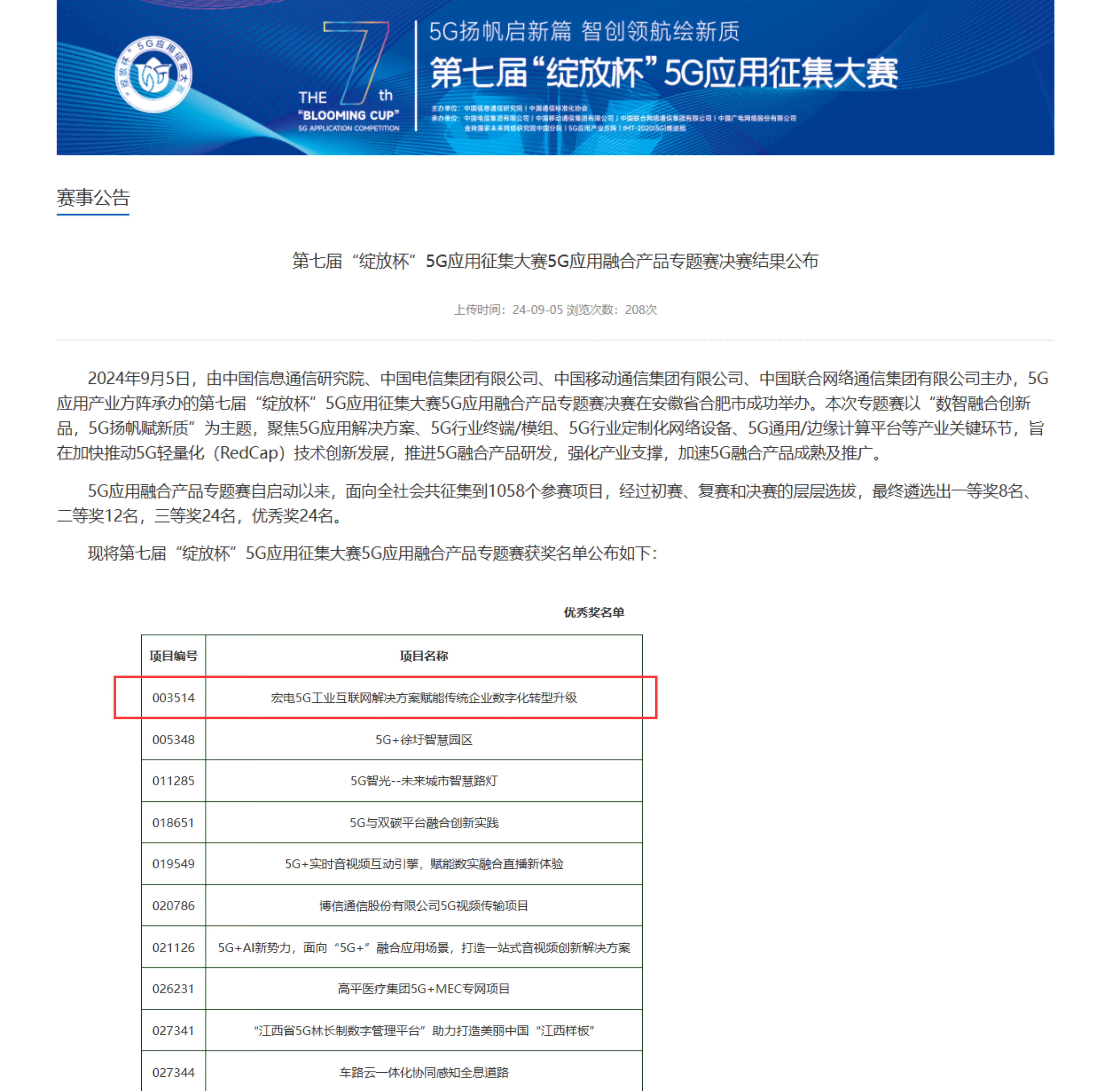 “綻放杯”由中國信息通信研究院及三大運(yùn)營商共同主辦,是國內(nèi)最具影響力的全國性5G應(yīng)用賽事,本次“綻放杯”5G應(yīng)用融合產(chǎn)品專題賽共征集到來自全國各地的1058個(gè)項(xiàng)目參賽,歷經(jīng)初賽、復(fù)賽、決賽的激烈角逐,最終評(píng)選出68個(gè)獲獎(jiǎng)項(xiàng)目,充分展示了5G融合產(chǎn)品的技術(shù)創(chuàng)新及推廣應(yīng)用成果。