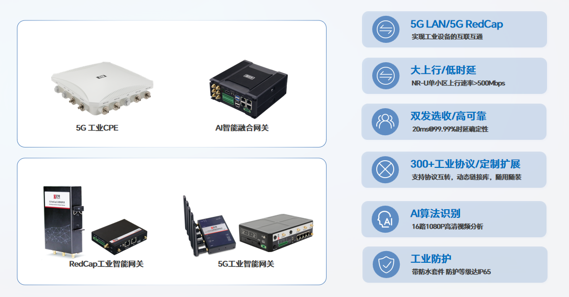 該方案核心采用的宏電邊緣通信智能終端全面擁抱5G技術(shù),支持5G LAN、多DNN接入及網(wǎng)絡(luò)切片等特性,徹底擺脫有線束縛,有效應(yīng)對(duì)工業(yè)環(huán)境下WiFi切換頻繁導(dǎo)致的連接不穩(wěn)、傳輸易中斷及實(shí)時(shí)性差等痛點(diǎn)。不僅能夠?qū)崿F(xiàn)海量、多樣化的數(shù)據(jù)高效采集與即時(shí)處理,還構(gòu)建了一個(gè)更加安全、靈活且響應(yīng)迅速的工業(yè)無線網(wǎng)絡(luò)體系,滿足數(shù)采,PLC控制,視覺Al等運(yùn)行需求,支撐全場(chǎng)景應(yīng)用。